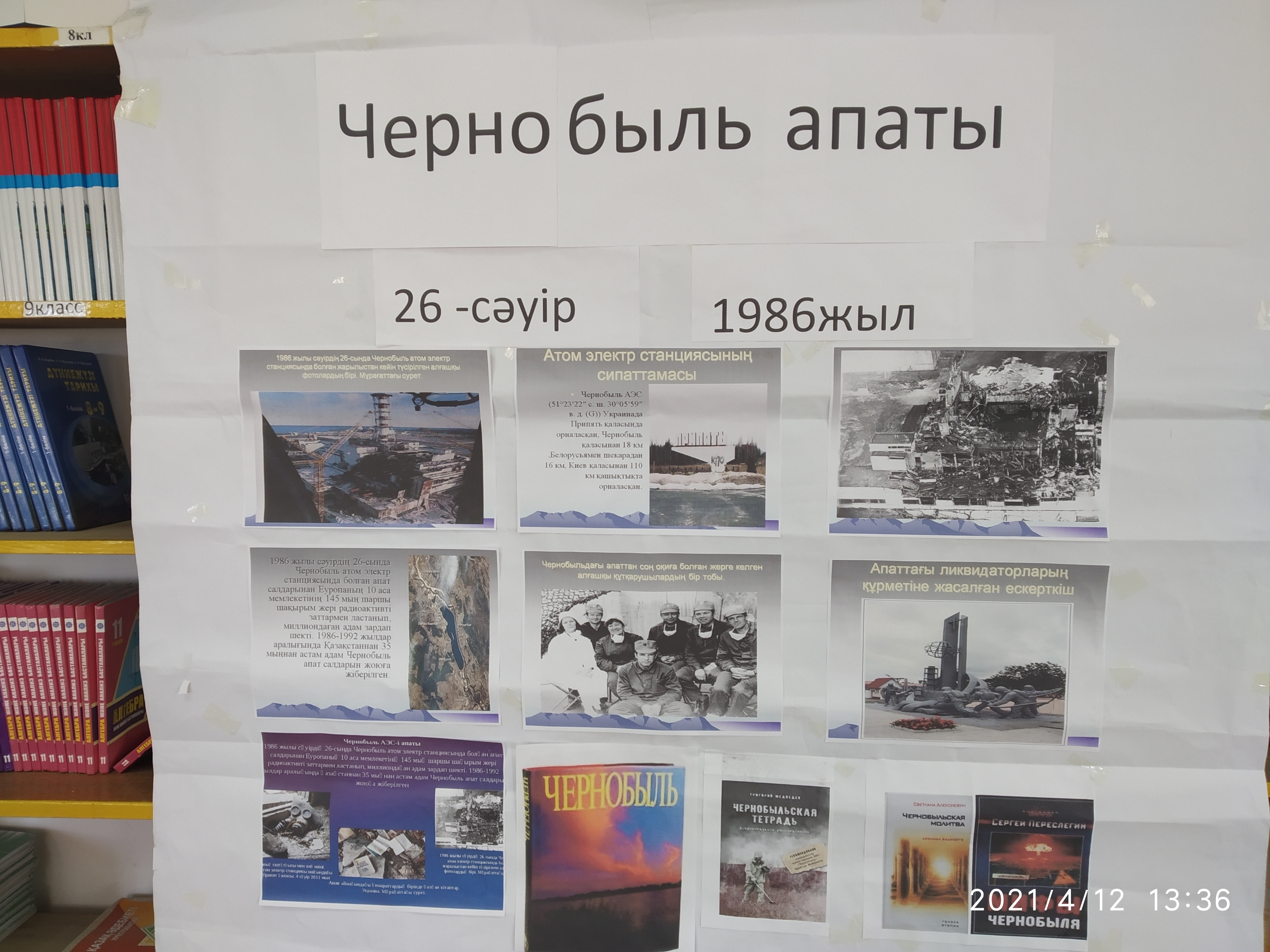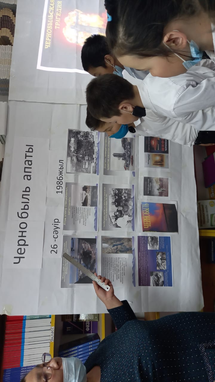 С.Жиенбаев орта мектеп кітапханасында , биыл Чернобыль апатының 35 жылдығына орай көрме өткізілді. Оқушыларға АЭС-апатының зардаптары және апат кезінде көмек қолын созған қазақстандықтар жөнінде баяндап берілді