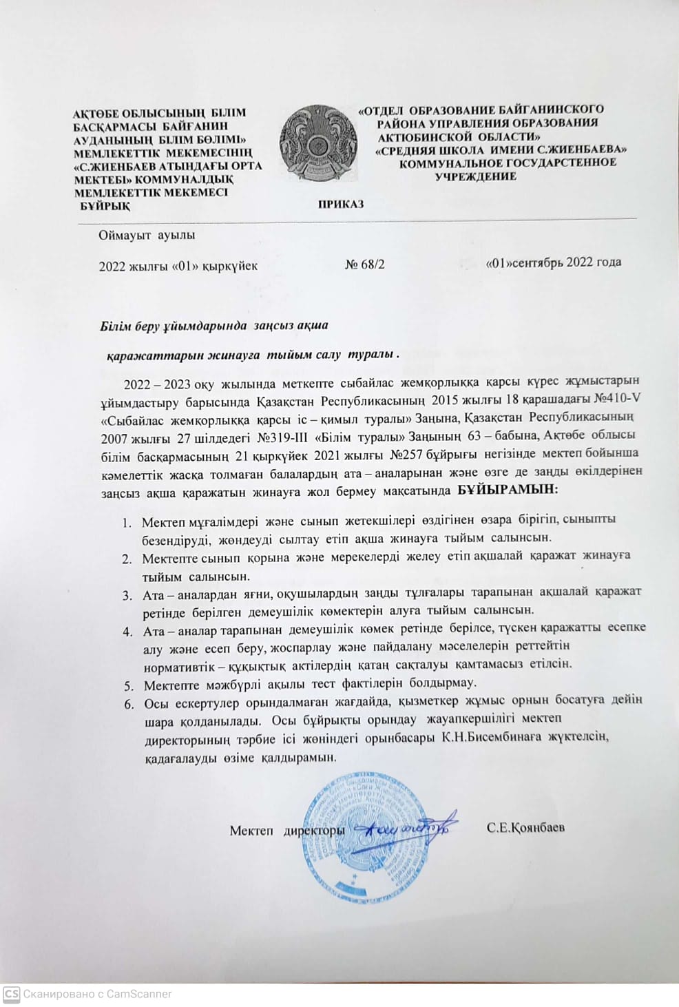 | 4 | Білім беру ұйымдарында қаражат жинауға тыйым салу, сыбайлас жемқорлықтың алдын алу туралы |